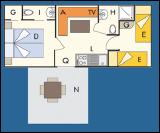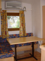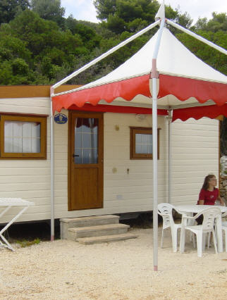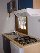 Die Mobilheime für bis zu 4 Personen... bestehen aus einem Wohn-/Küchenbereich(mit Sat-TV), einem Bad (WC, WB und Dusche), einem seperatem WC sowie aus 2 Schlafzimmern (1 x Doppelbett, 1 x 2 Einzelbetten). Jedes Mobilhome ist mit Klima ausgestattet und verfügt über Sitzgelegenheit für draußen. Viele Mobilhomes haben Meerblick. Vor jedem Mobilheim steht ein schattenspendender Pavillon mit einem Tisch und 4-5 Stühlen sowie einer Liege. Die Küche ist unter anderem ausgestattet mit einem Kühlschrank ,einem Gasherd, Kaffeemaschine und Wasserkocher.